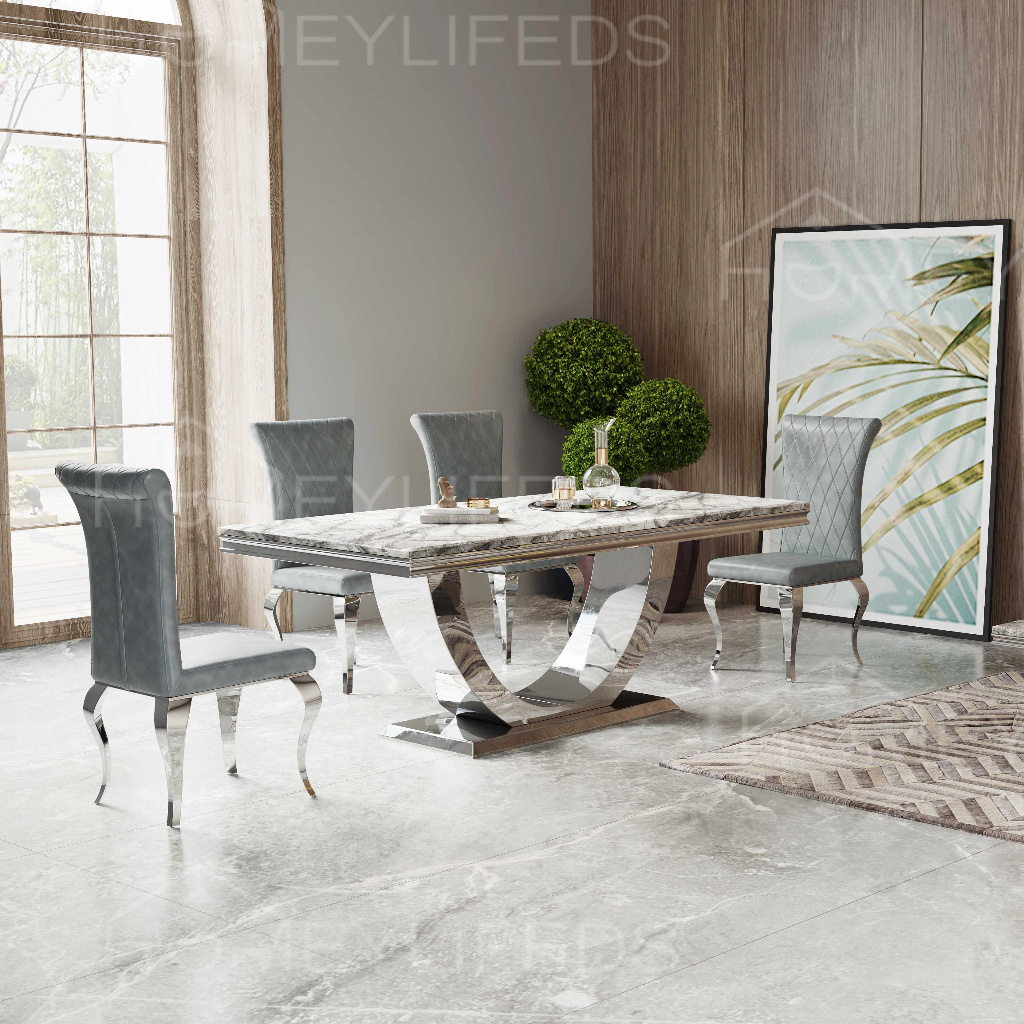 customization furniture dinning table and chair set dubai gold and silver stainless steel for luxury glass top dining table set